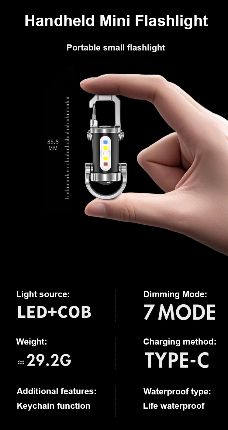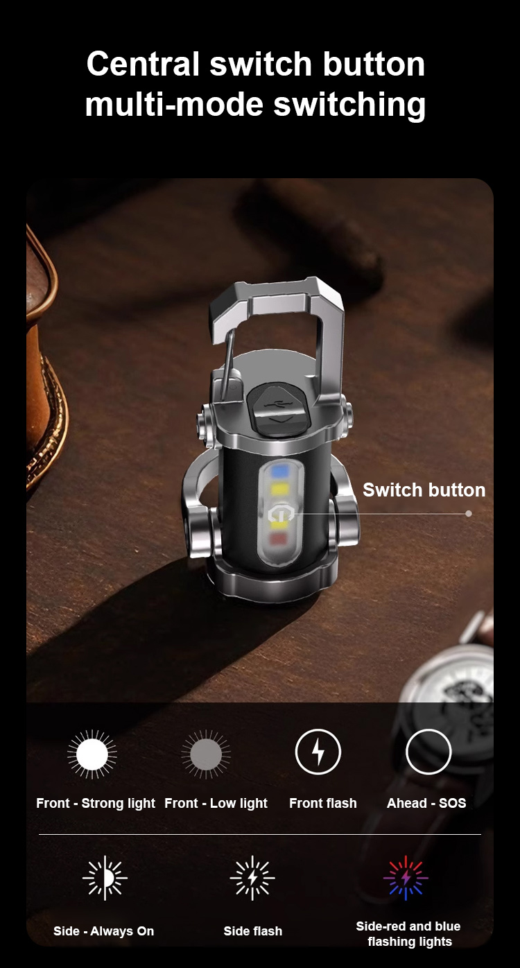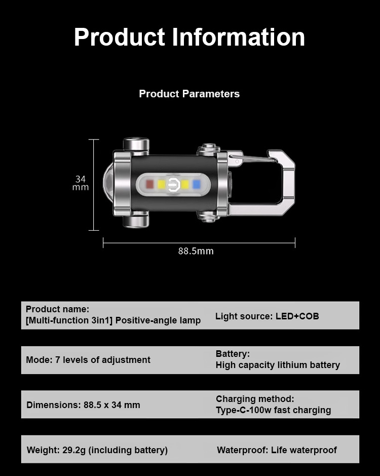 Lampu Suluh Kecemasan SOS Multifungsi 3-dalam-1 | Lampu Isyarat Amaran Pelbagai Warna | LED Mudah Alih Sangat Terang dengan Klip Carabiner | Alatan Survival Luar Rumah